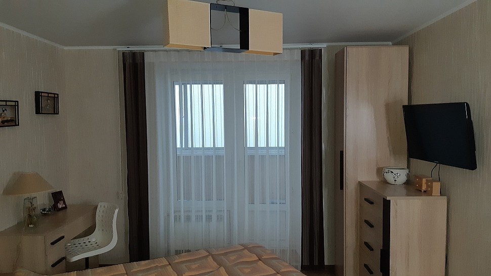 Жалюзийные шторы «Валс-Бостон» в спальне. Шторы в закрытом и открытом положении ламелей. Стоит только потянуть за цепочку, и плотные жалюзи преобразятся в легкую штору из тюли. Фото от Нины (Белгород, Белгородская область).
