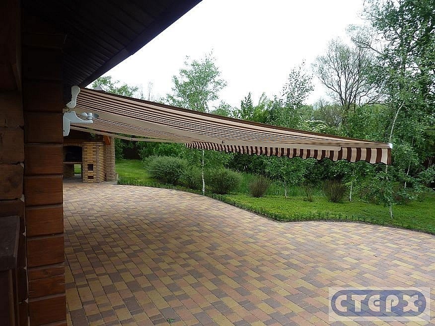 Маркиза «Атлет-Гранд» (ширина 7 метров, вылет 4 метра) над зоной отдыха в п. Никольское. 28 квадратных метра комфорта!