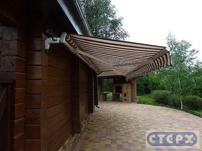 Маркиза «Атлет-Гранд» (ширина 7 метров, вылет 4 метра) над зоной отдыха в п. Никольское. 28 квадратных метра комфорта!