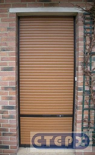 Скрытый монтаж рольставней на входе в дом. Применена комбинация цветов.