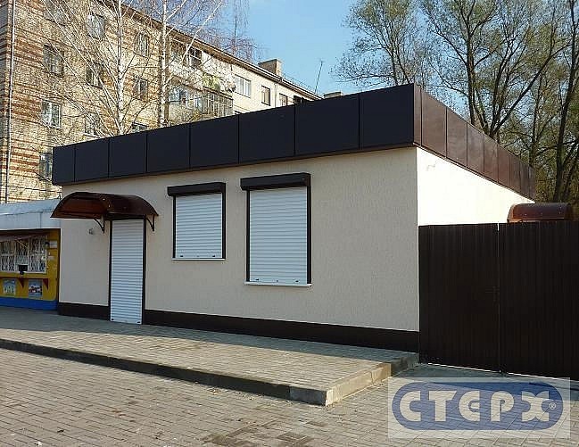 Рольставни с комбинированием цвета на торговом павильоне в Шебекино Белгородской области.