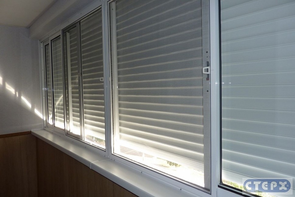 Рольставни и раздвижное балконное остекление. Раздвижное алюминиевое балконное остекление, интегрированное с электрическими рольставнями, установлено на лоджии, в квартире на 11 этаже жилого дома в Белгороде.