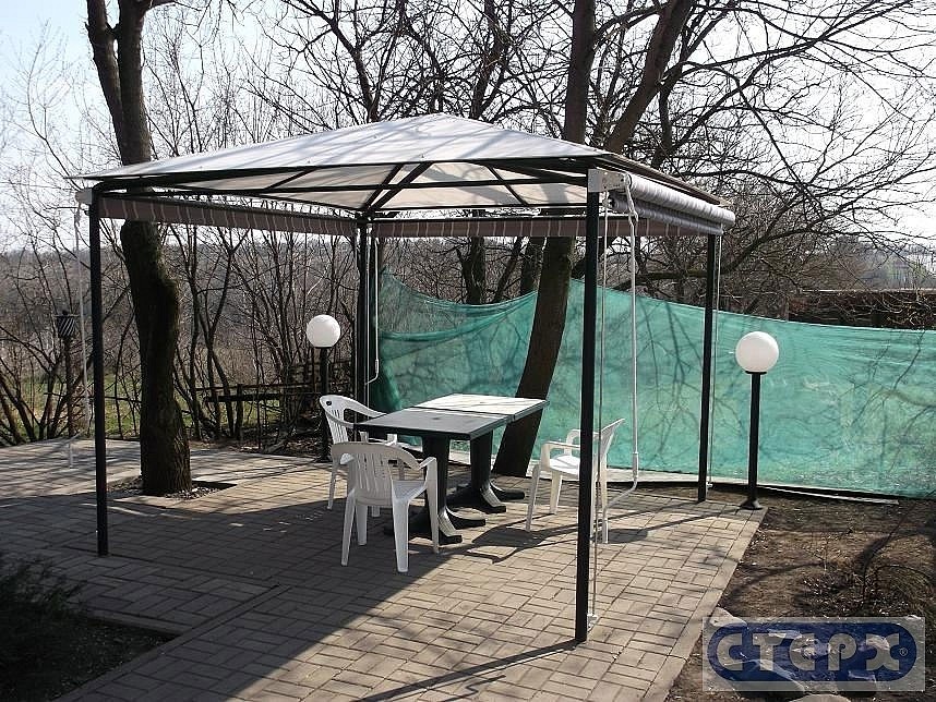 Фотография: Вертикальные маркизы на летней площадке кафе в поселке Новая Деревня Белгородского района Белгородской области. Маркизы свернуты.