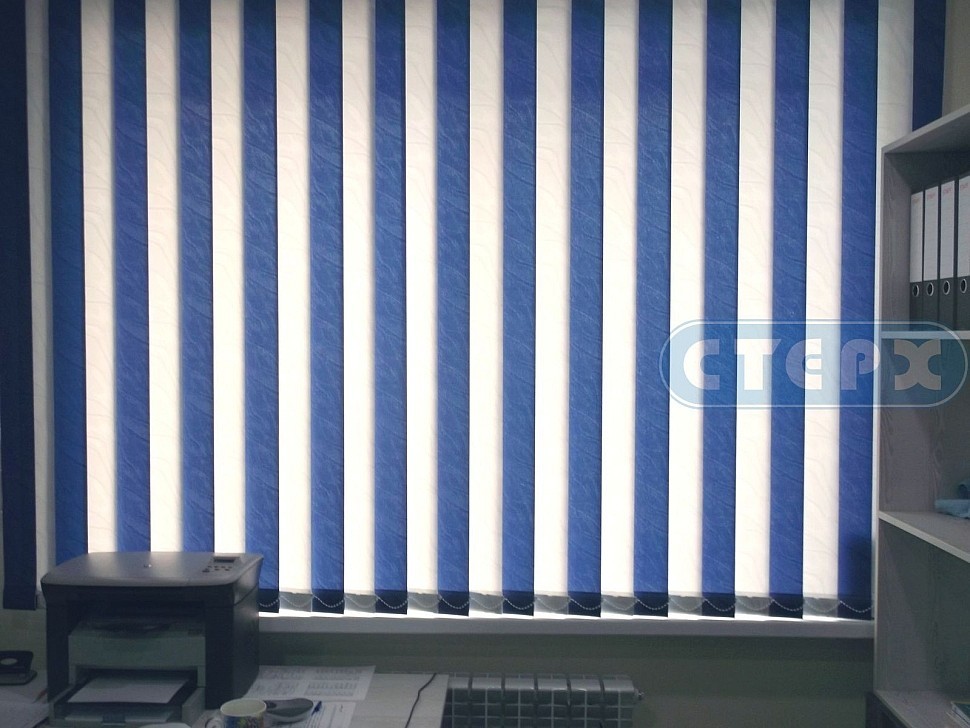 Фотография: Вертикальные жалюзи с чередованием ламелей в сине-белом цвете