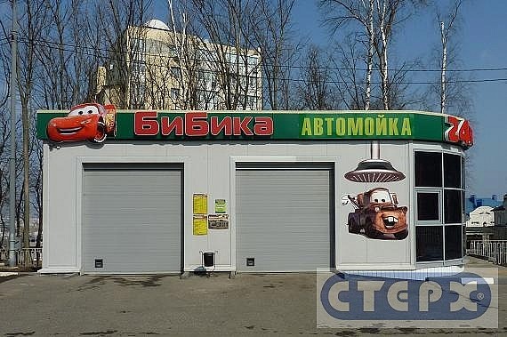 Фотография: Автомойка «БиБика». Автоматические секционные ворота «DOORHAN», цвет RAL 7004 (серый).