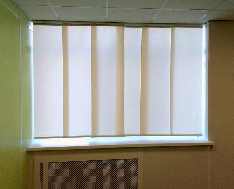 Японские панели - это тканевые экраны без драпировок, которые могут перекрывать поток света благодаря скольжению по карнизу влево и вправо.
